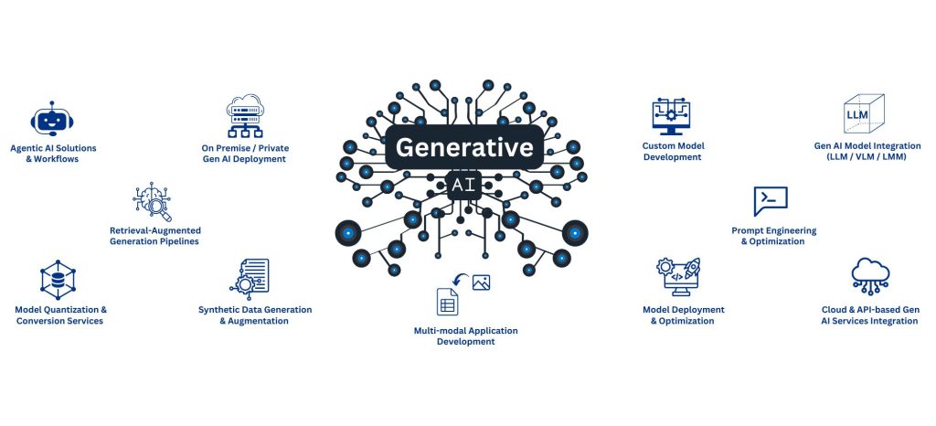 KritiKal Solutions helps businesses solve complex challenges by transforming how they work, engage with users, and deliver value using Generative AI. We build intelligent solutions that streamline workflows, improve decision-making, and enhance customer experiences. By combining advanced AI models with vision and language understanding, we create systems that think, see, and respond more like humans. Our solutions are built for scale and reliability, supported by secure cloud infrastructure and optimized for real-world performance. We assist you confidently with consistent development, training, validation, tuning and deployment of next generation enterprise GenAI and AI/ML models, which are capable of building applications and more with a fraction of existing client data. Entrust KritiKal Solutions to be your premier partner in crafting cutting-edge products and platforms with its transformative Generative AI solution such as advanced large language models (LLMs), finessed prompt engineering, Multi-modal Models, Generative Adversarial Networks (GANs), Retrieval Augmented Generation (RAG) systems etc.