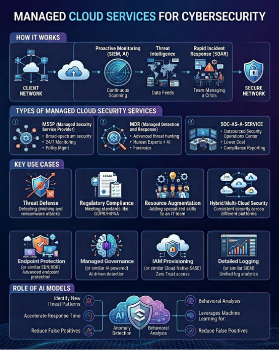 The need for cybersecurity is in demand as many business operations are moving towards the cloud, thus highlighting the necessity for competent cloud management services. Given its various benefits, such as flexibility, scalability, and lowered expenses, alongside increasing data volumes and sharing, major cloud landscape expansion is underway. It is not unknown that the adoption, however, carries certain cybersecurity challenges, including cyber threats, ransomware attacks, and data breaches due to multi-cloud security misconfigurations. A third-party service provider of IaaS, PaaS, SaaS, DBaaS, STaaS, or user management as a service, enables such services for guarding the cloud IoT solutions against potential risks, managing servers, backing up data, monitoring, and security through anti-virus configurations, Virtual Private Networks (VPN), periodic vulnerability testing, and extensive firewall management.