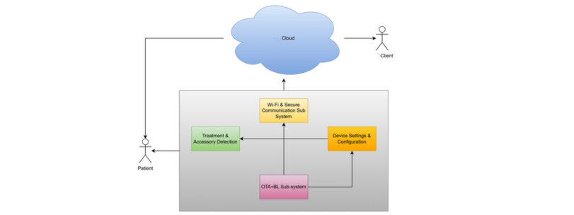 To achieve a seamless and efficient treatment workflow, a hybrid solution will be designed, combining on-device security infrastructure with cloud communication capabilities. The electrotherapeutic device offers a cost-effective, drug-free option for treating anxiety, insomnia, and pain quickly and safely. According to FDA regulations, this device comes under the Class III category. This implies that the most stringent compliance requirements apply to it in terms of documentation, testing, and cybersecurity.