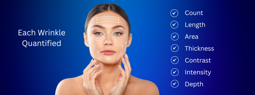- Automated Wrinkle Detection: Identifies and analyse fine lines, deep wrinkles, and skin texture changes.